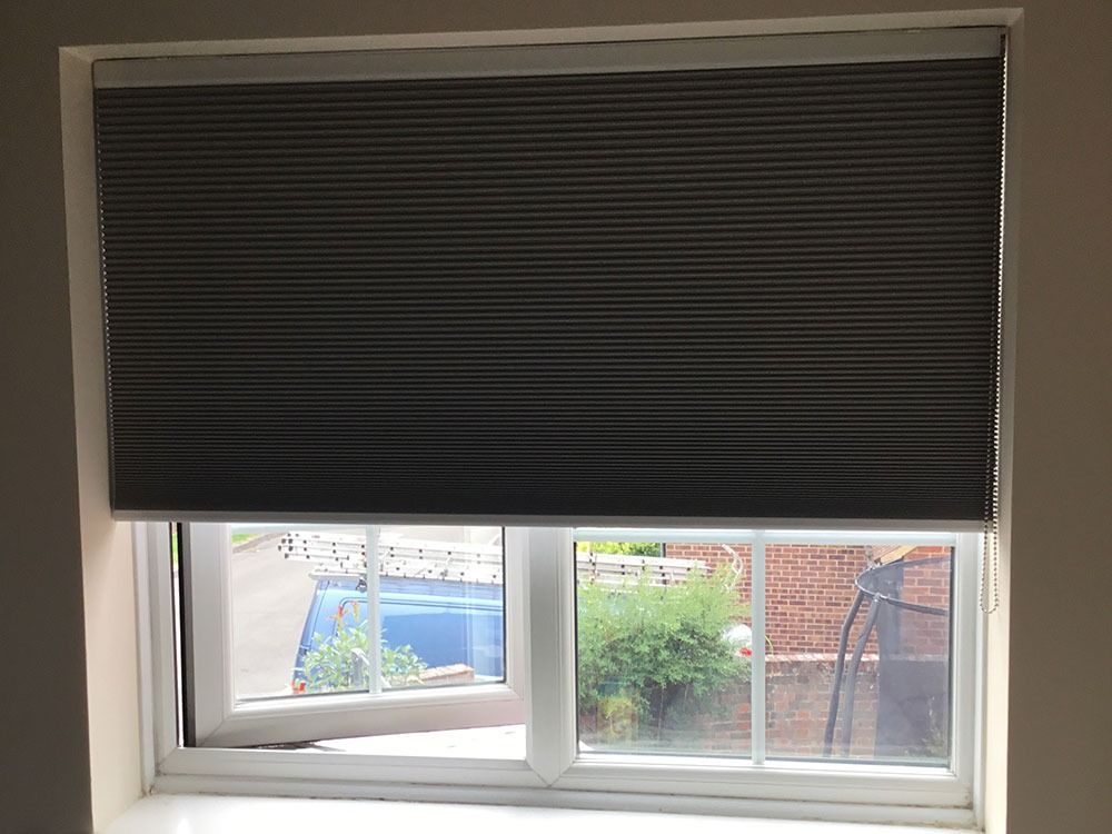 - Honeycomb, (a double fabric) offers superb energy efficiency whilst giving a smooth and stylish finish. There are no tension cords on view as they are between the two fabrics.